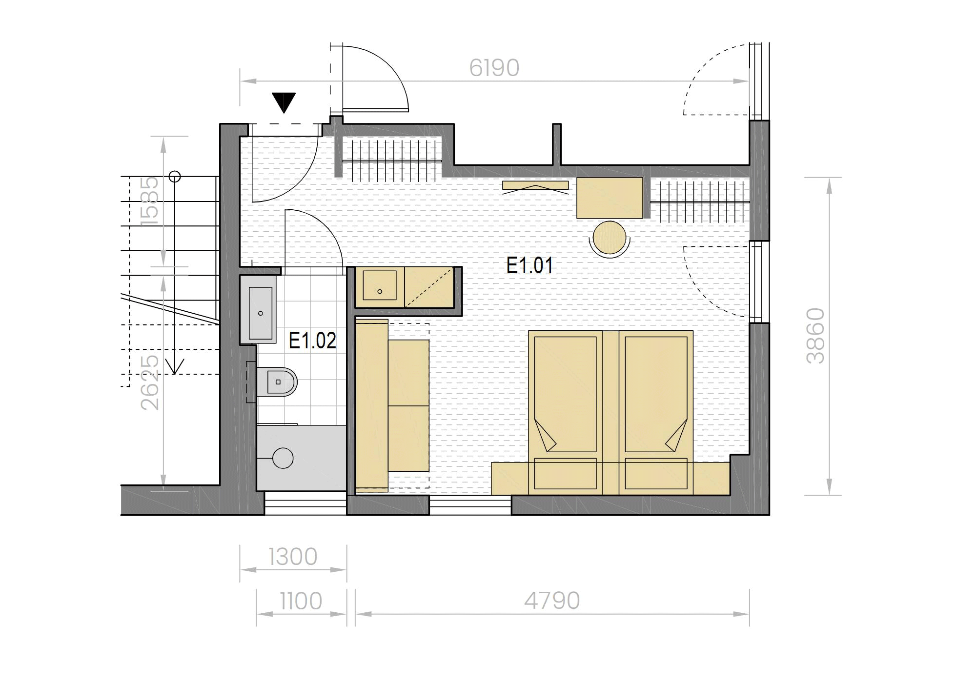 Jednotka je standardně vybavená lůžkovým systémem FLEX&SMART, vlastní koupelnou s walk-in sprchou, WC a umyvadlem, vestavnou skříní a dalšími odkládacími prostory pro věci ubytovnaých hostů, stolkem s židlí, závěsnou TV. Na podlaze je kvalitní zátěžový koberec, který zajišťuje maximální pohodlí a domáckou atmosféru při pobytu. Jednotka je napojena na topení z centrální kotelny v domě. K zajištění bezpečnosti hostů je v jednotce instalováno kouřové čidlo.