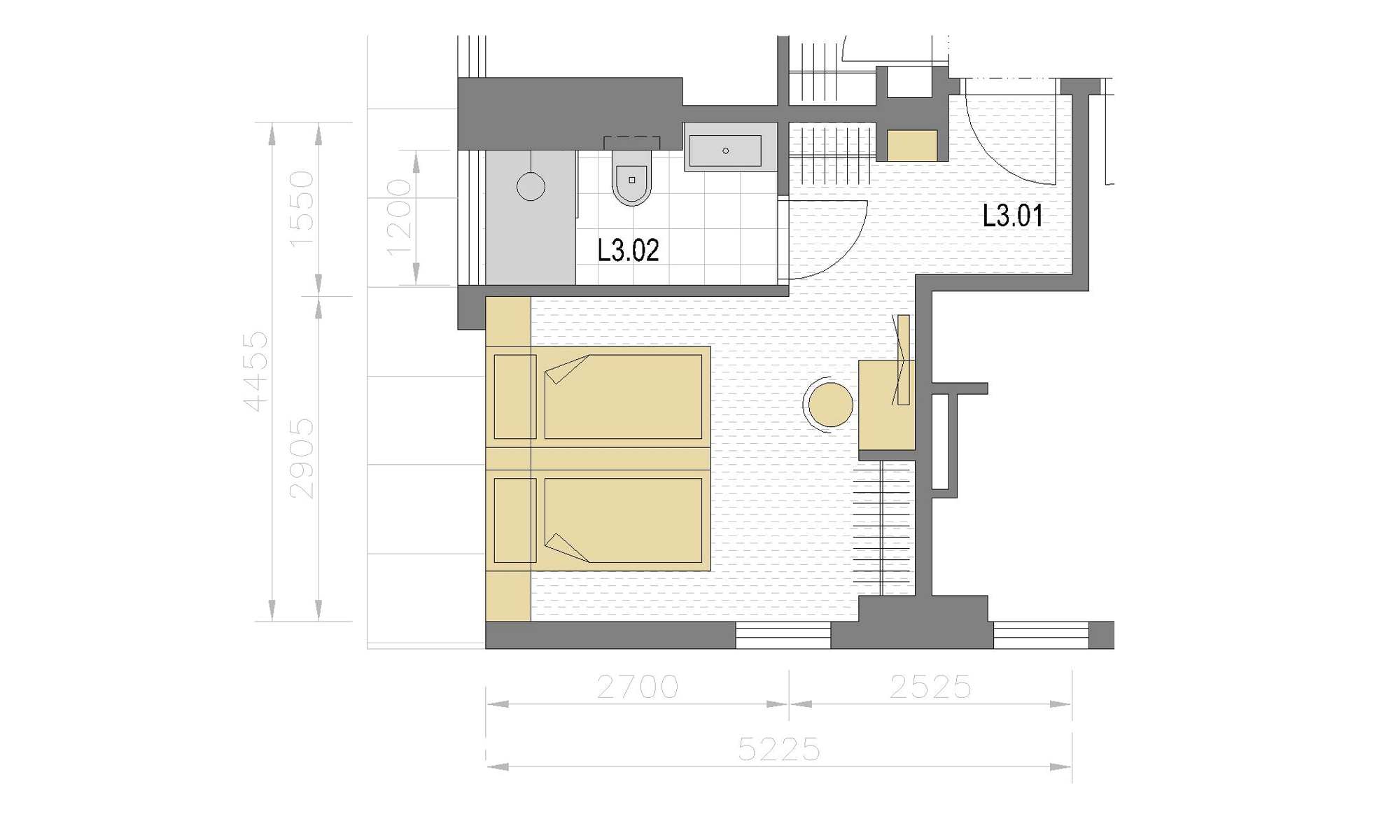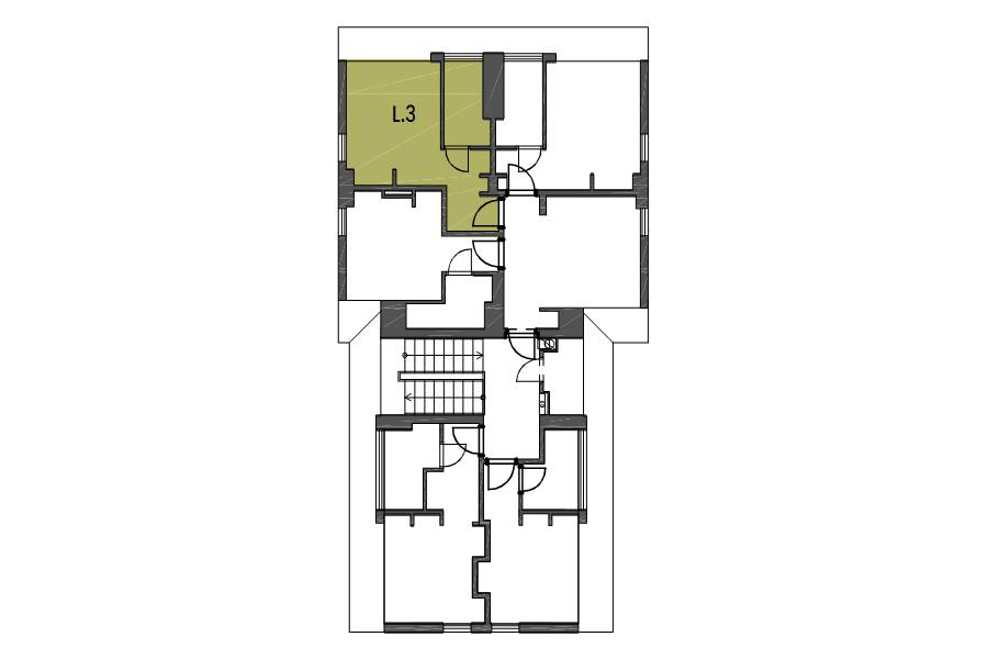 Daná jednotka těsně přiléhá ke společenské místnosti S.3 o podlahové ploše 15,75 m2. K dané jednotce náleží právo užívat společenskou místnost S.1 společně s uživateli jednotek K.3 a M.3. Společenská místnost je vybavena plnohodnotnou kuchyní, TV a sezením pro 6 osob. Celou sekci s jednotkami K.3, L.3 a M.3 a společenskou místností S.3 je možno uzavřít hlavními vstupními dveřmi a využívat tak celou sekci jako soukromou.